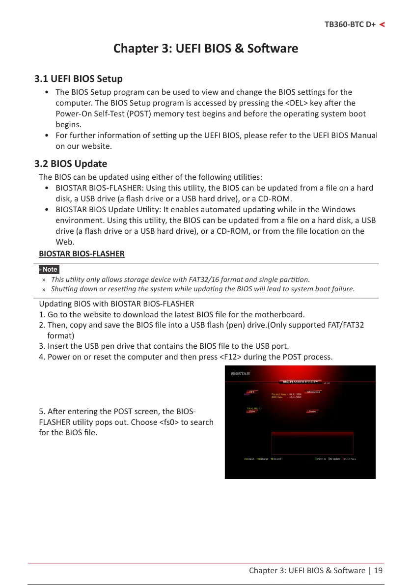 • BIOSTAR BIOS-FLASHER: Using this ulity, the BIOS can be updated from a le on a hard