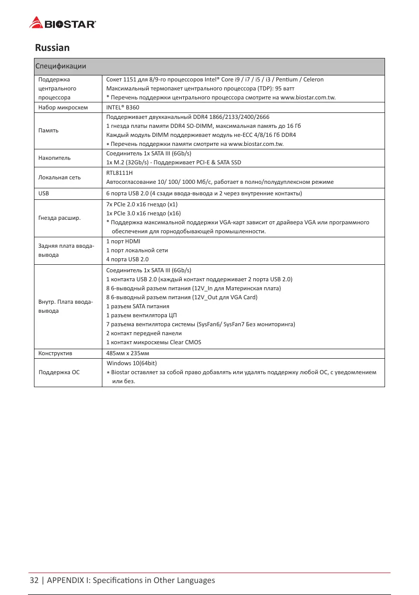 * Перечень поддержки центрального процессора смотрите на www.biostar.com.tw.