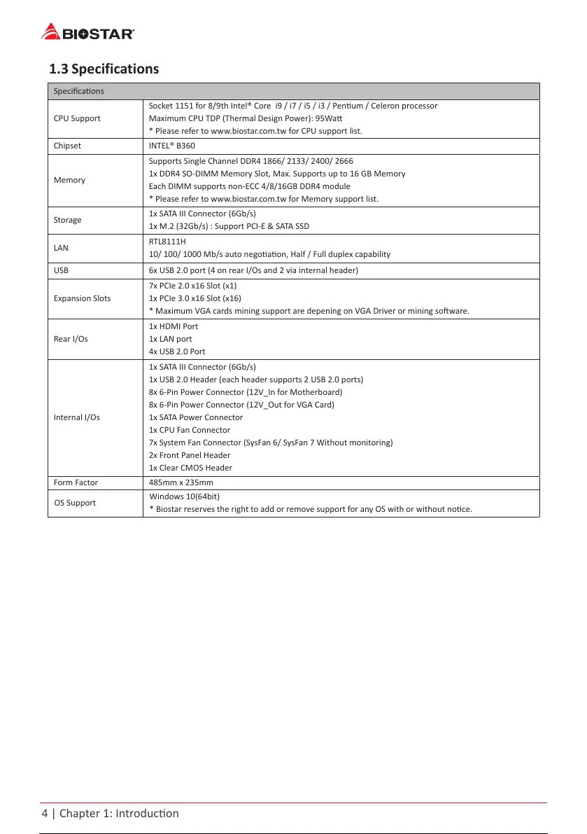 * Biostar reserves the right to add or remove support for any OS with or without noce.