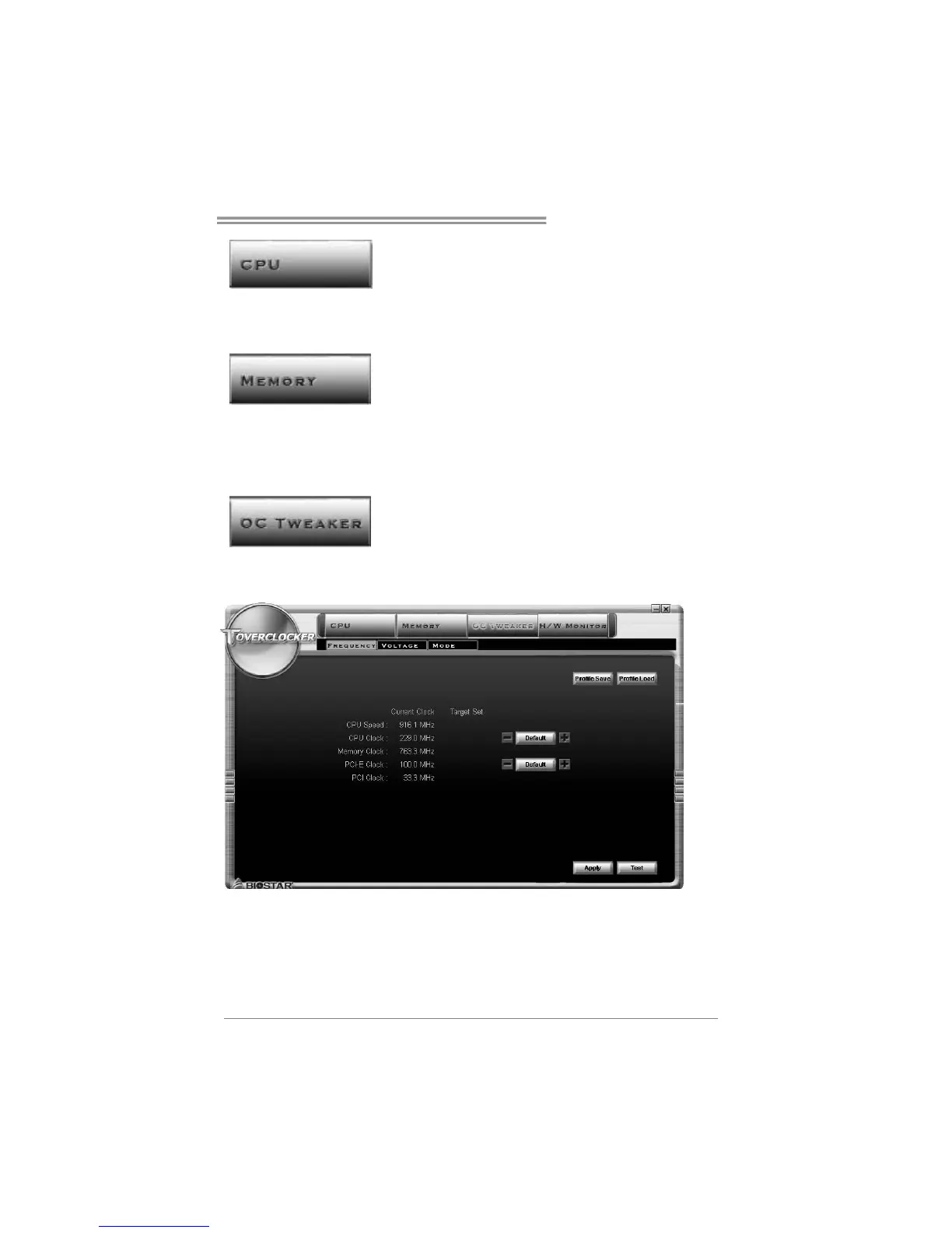 The OC Tweaker tab allows you to change system clock settings and voltages