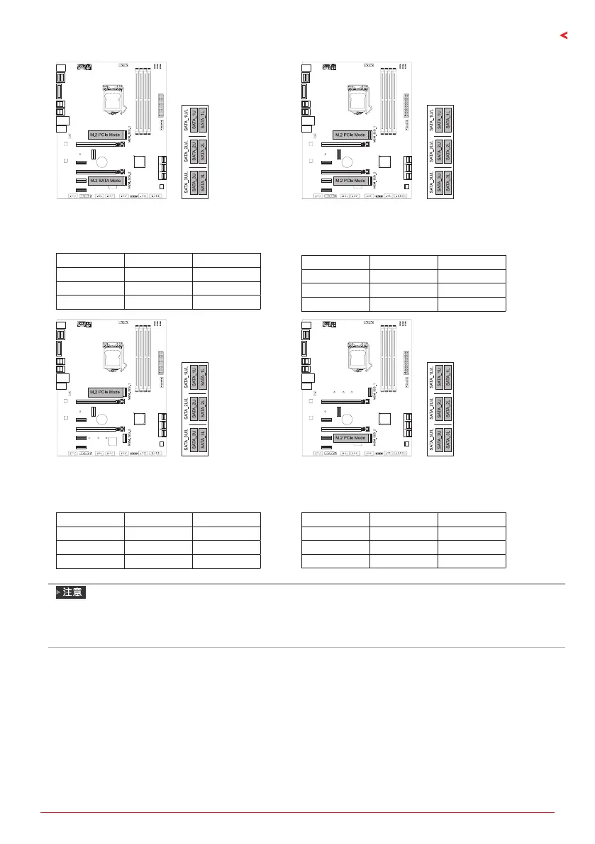 當安裝NVMe/ AHCI PCIe SSD模組於M.2(M2M_32G_1)插槽,所有的SATA接頭皆為可使用狀