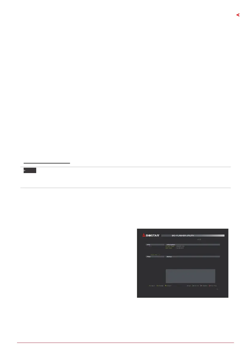 • BIOSTAR BIO-Flasher: Using this ulity, the BIOS can be updated from a le on a hard