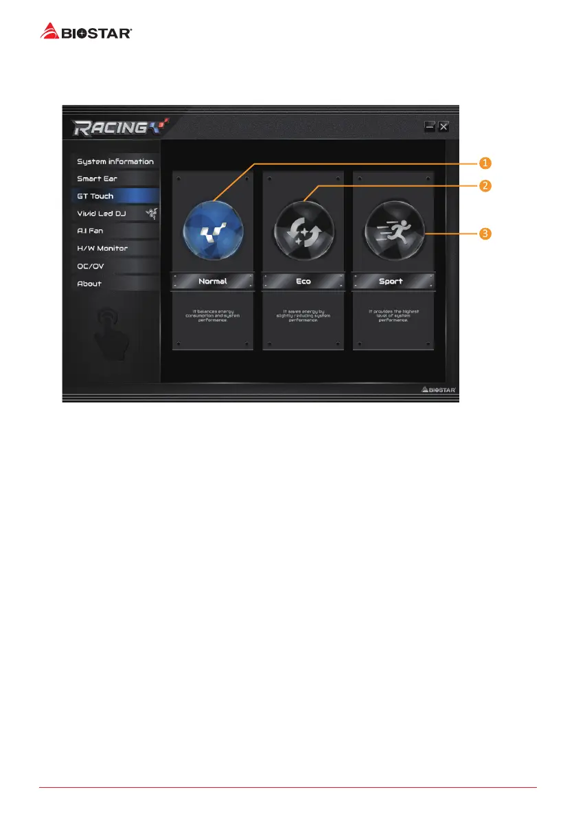GT Touch allows you to adjust Normal, ECO and Sport mode when running RACING GT EVO