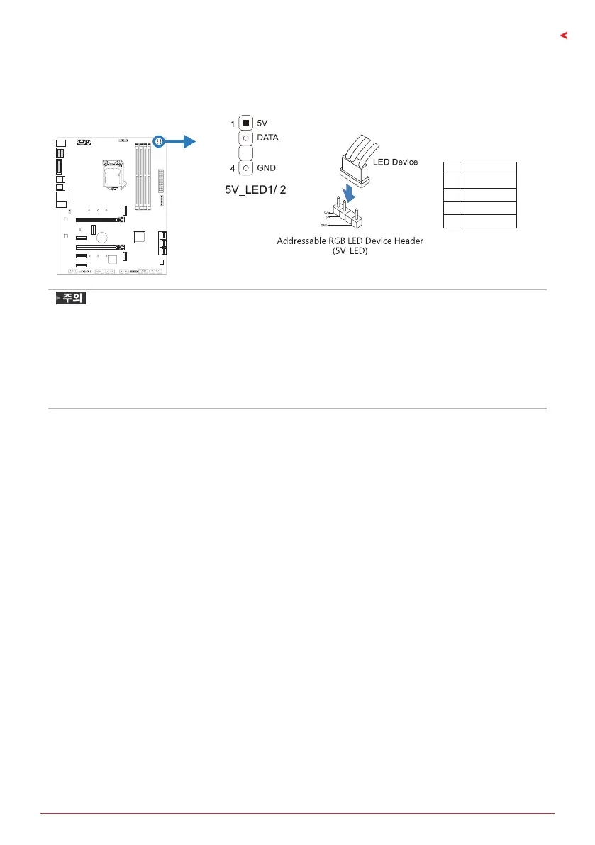 이 헤더는 ARGB LED 장치 (WS2818B)를위한 5V 전원 및 데이터 제어 핀을