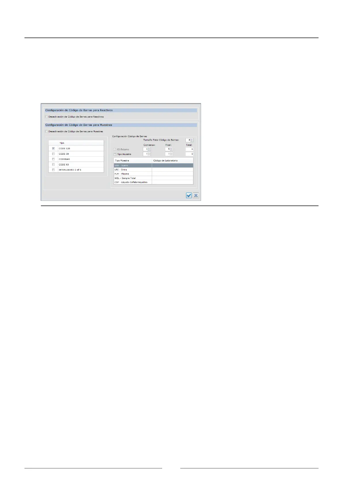 • Type: Select the barcode type used for printing the labels on the sample tubes.