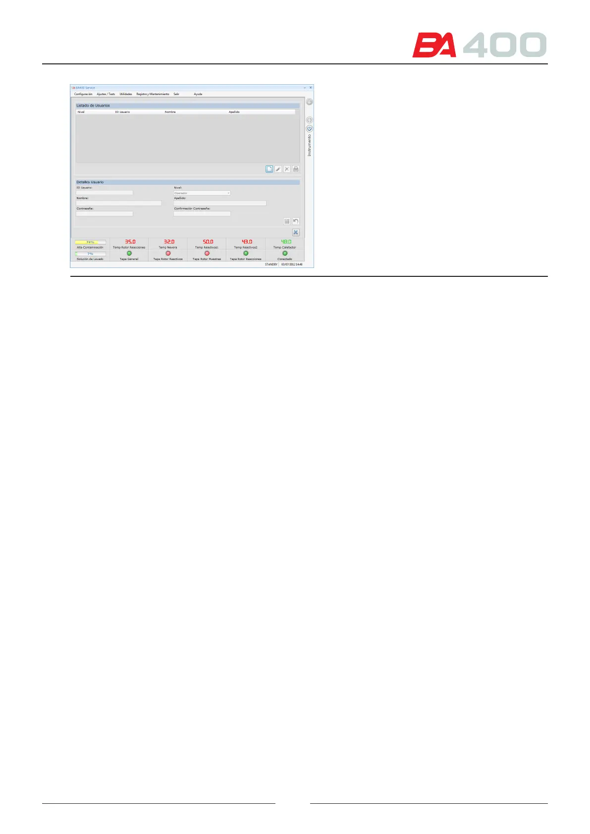 is menu is used to access the screens for adjusting the positions of the dierent mechanical elements of the ana-