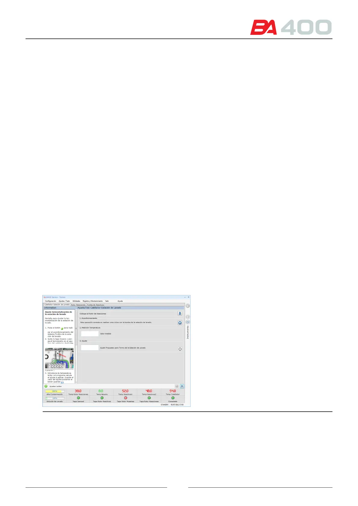 Consult chapter AIII to see the ranges accepted in making the wash station heater adjustment.