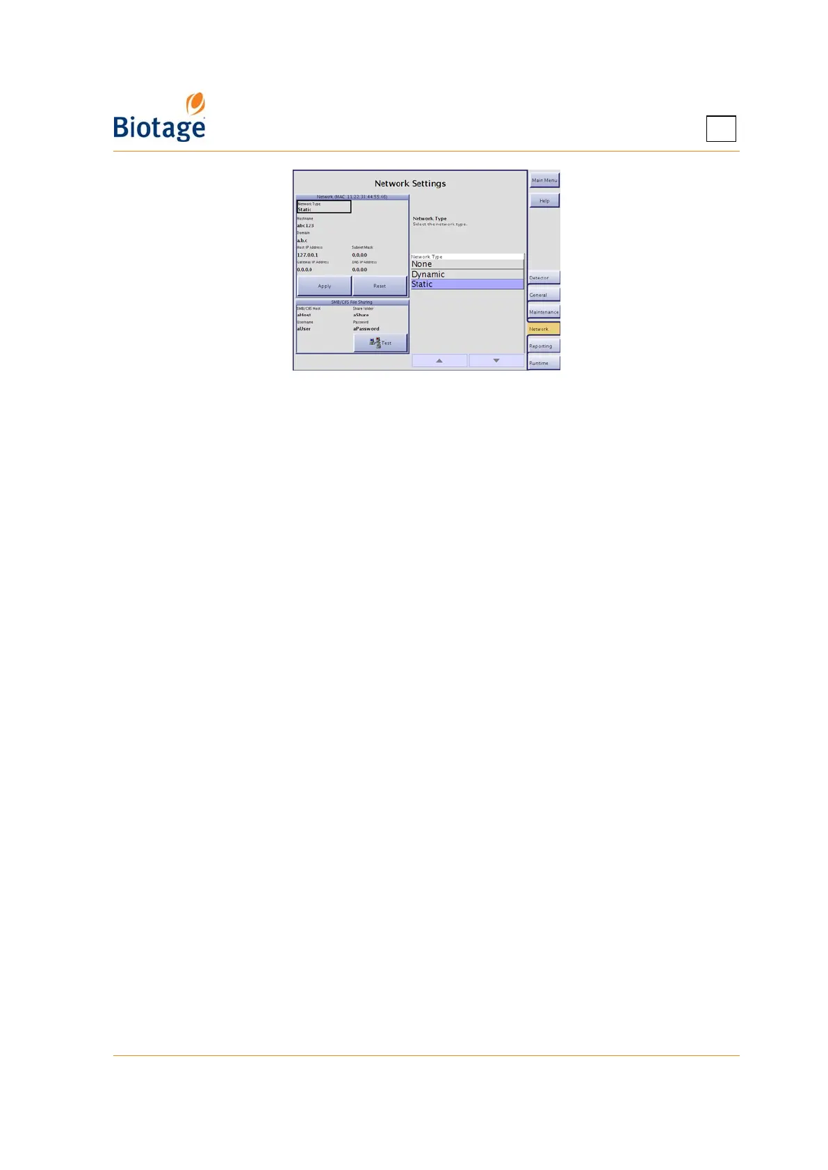3. Select the Network Type text box and select Dynamic or Static.