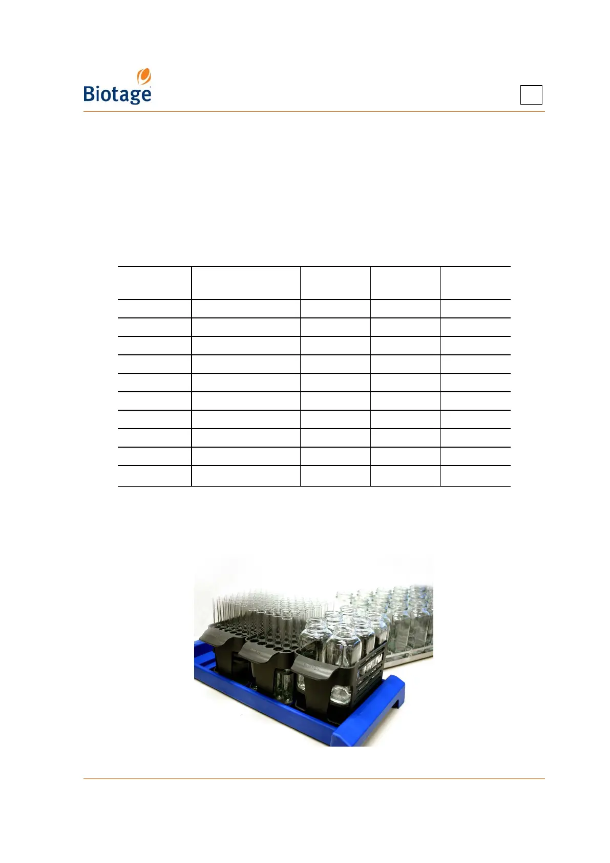 range is from 9 ml test tubes to 480 ml bottles. You may add other racks to this list (see “Add a
