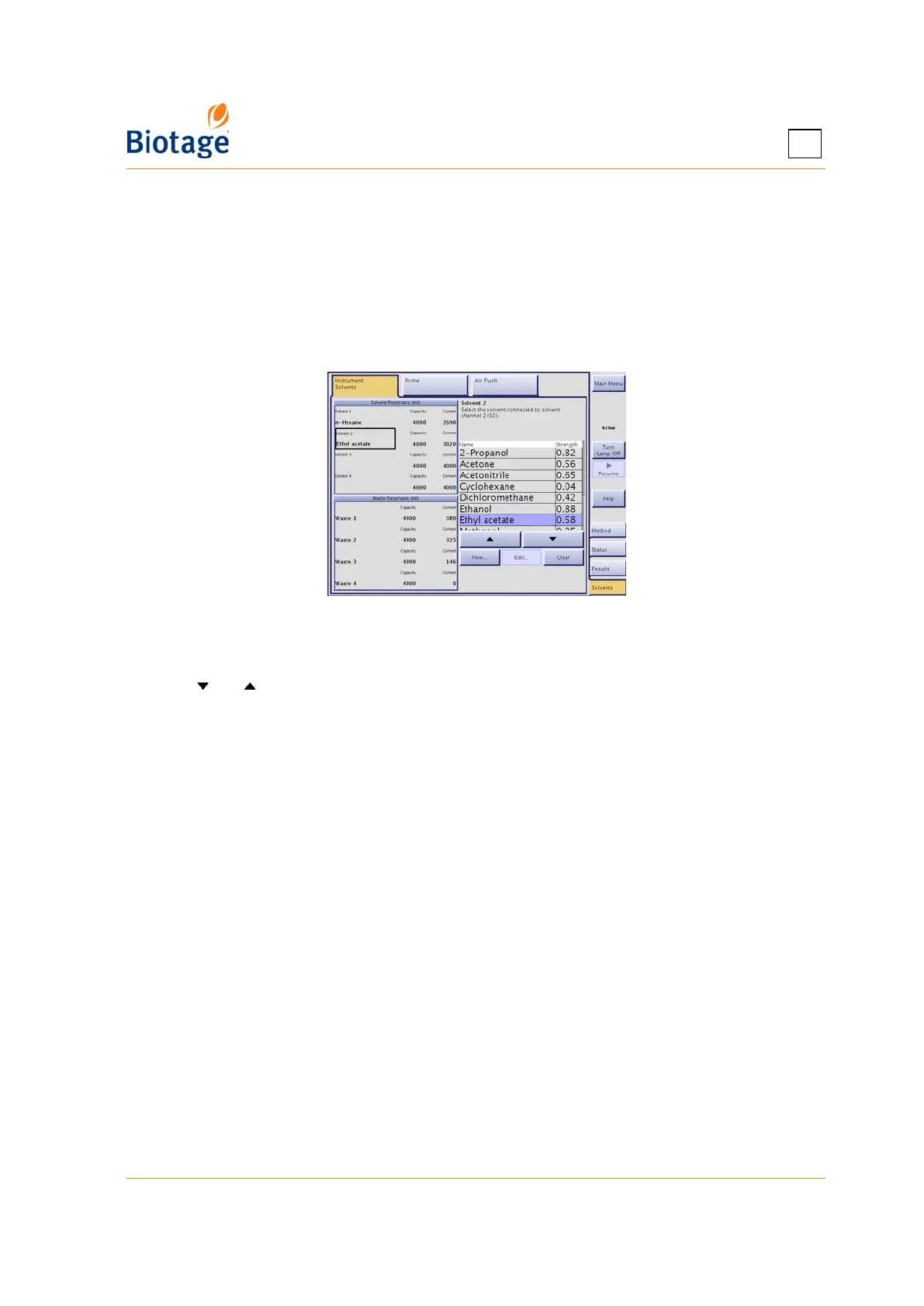 4. Select the solvent that you want to assign to the selected inlet. To scroll the list down or up,