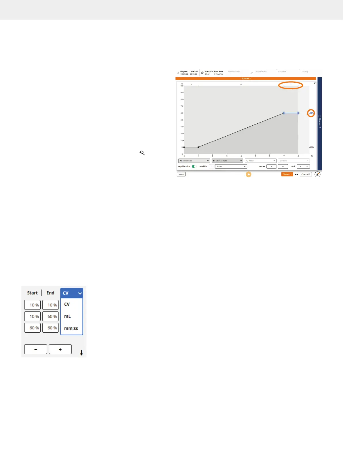 Unit or CV/mL/mm:ss: The gradient length unit. CV (column