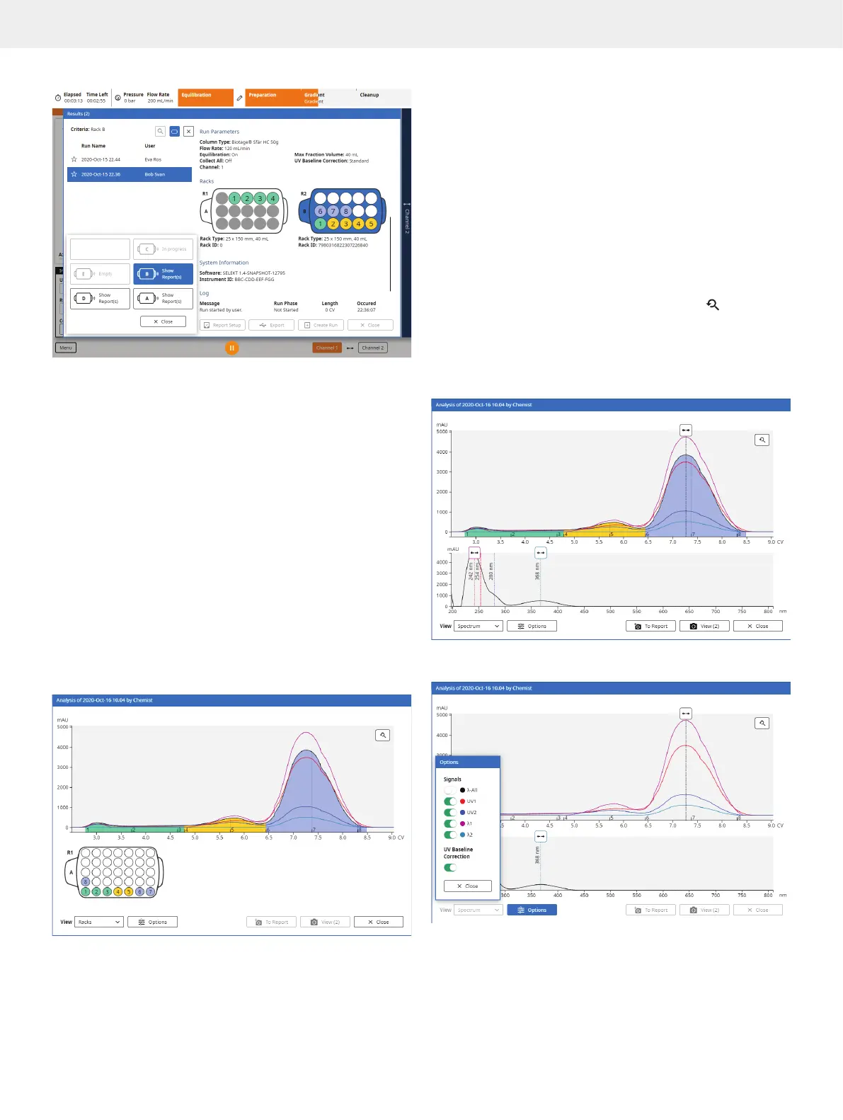 from viewing the rack(s) to viewing an absorbance spectrum by