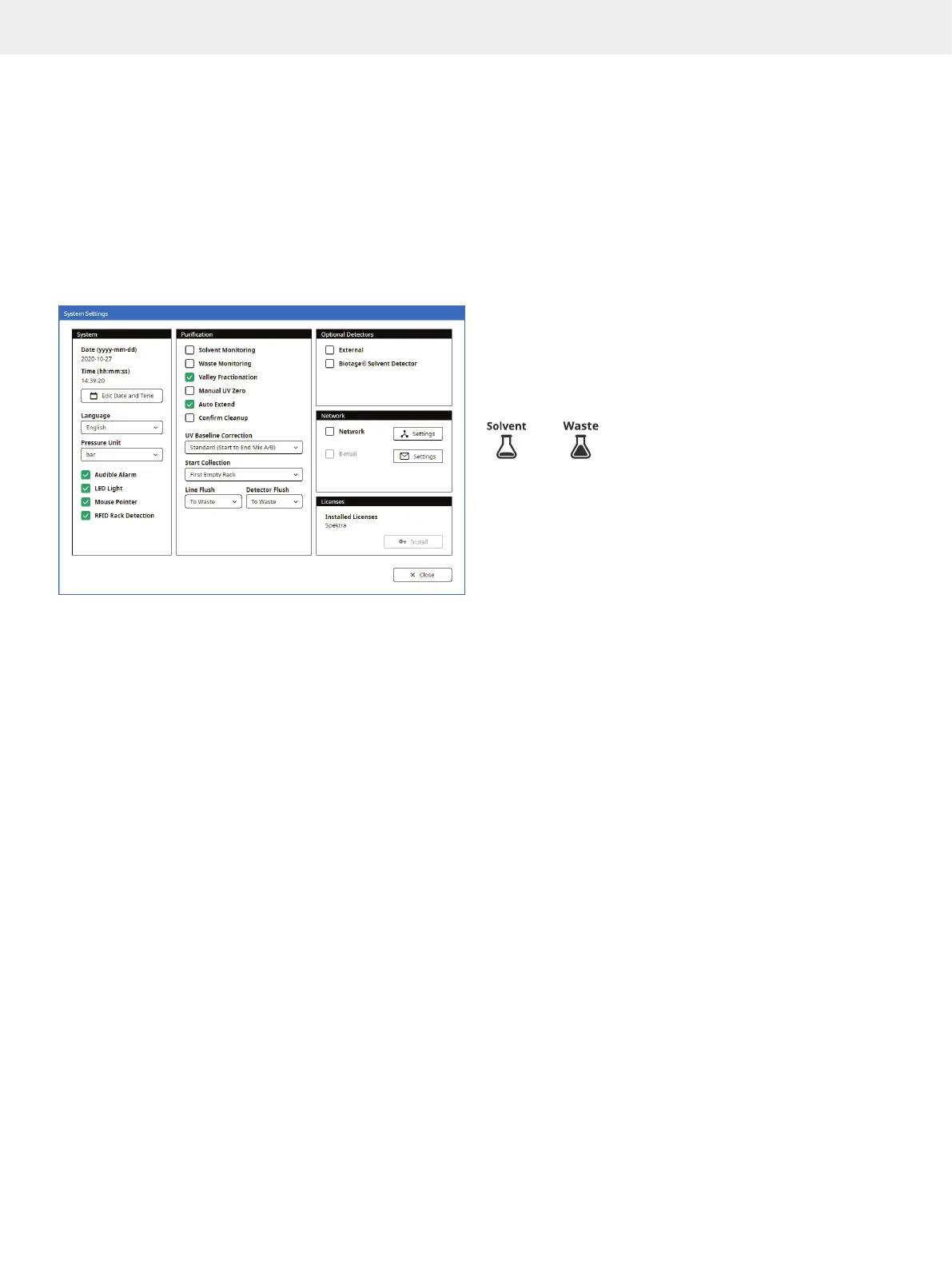 Solvent Monitoring: If enabled, the system will notify the