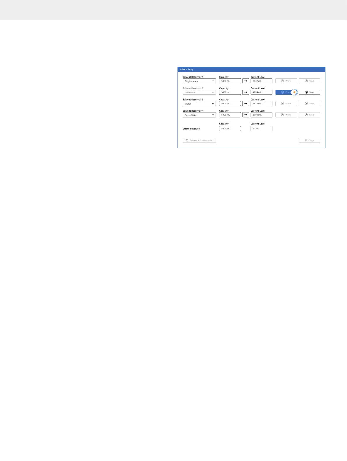 Figure 17. The Solvent Setup window with solvent and waste monitoring