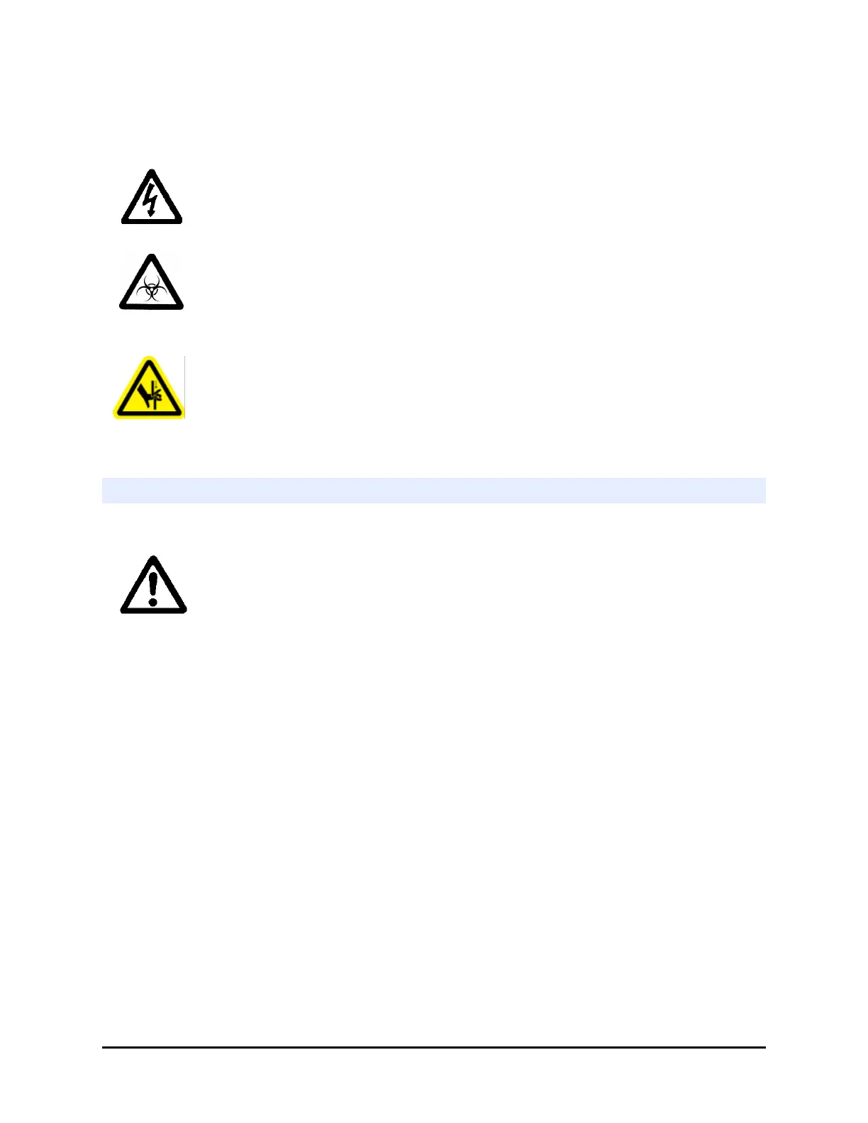 Warning! Potential Biohazards. Some assays or specimens may pose a