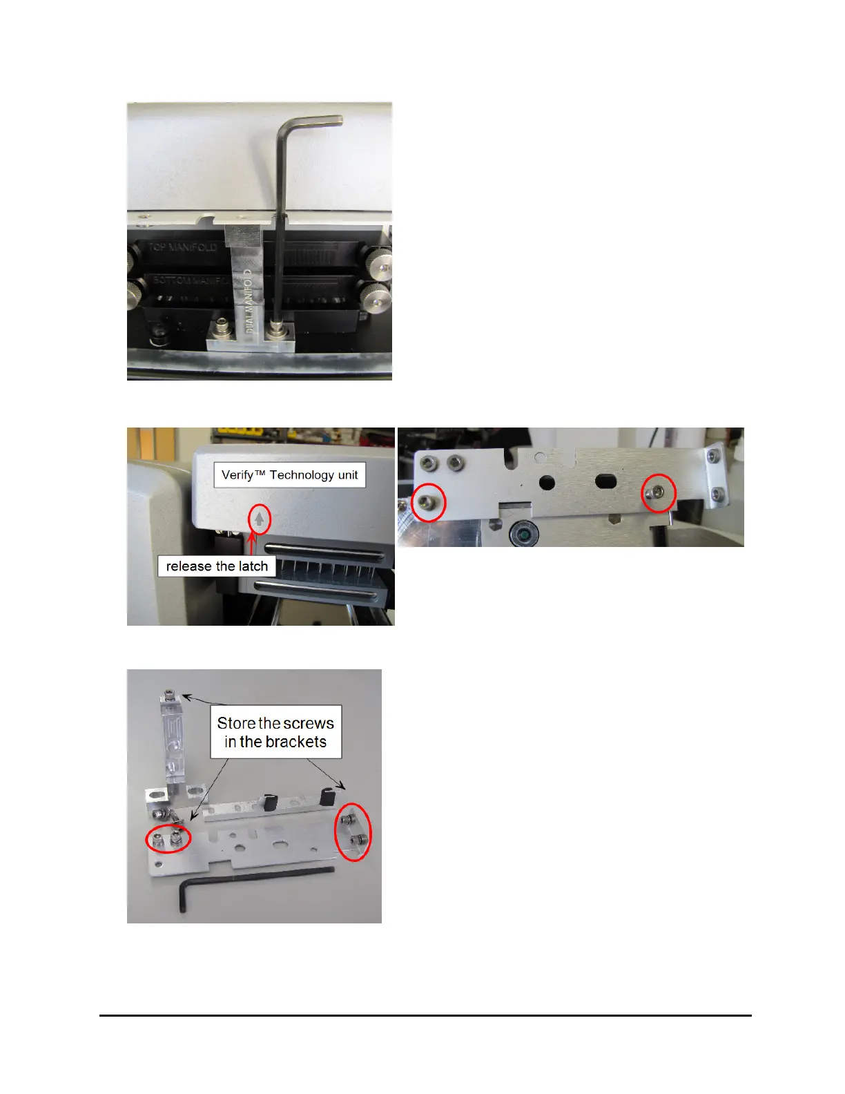 three screws. Slightly lift the manifold(s)