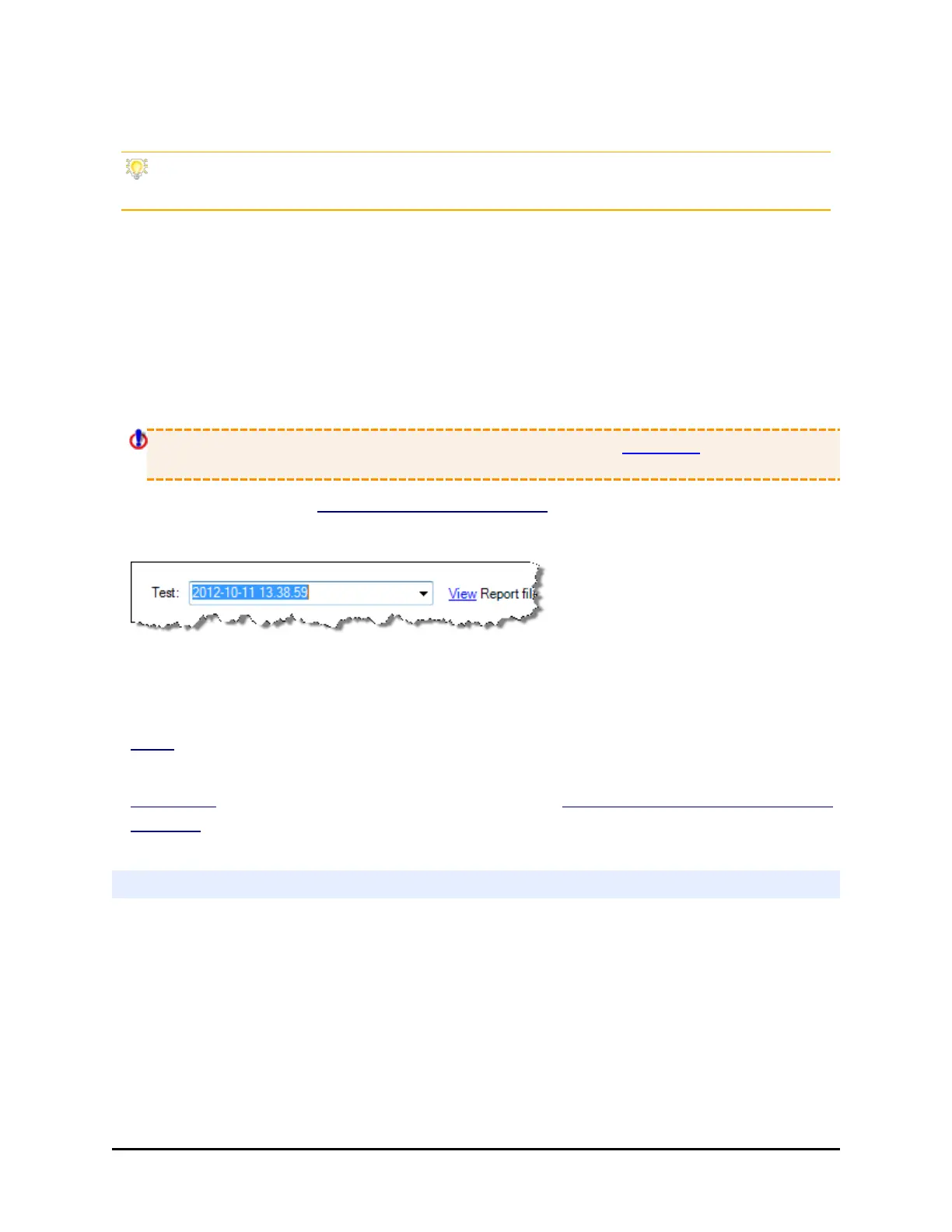 View Report file: to open a text file of the current test results. Report file names are