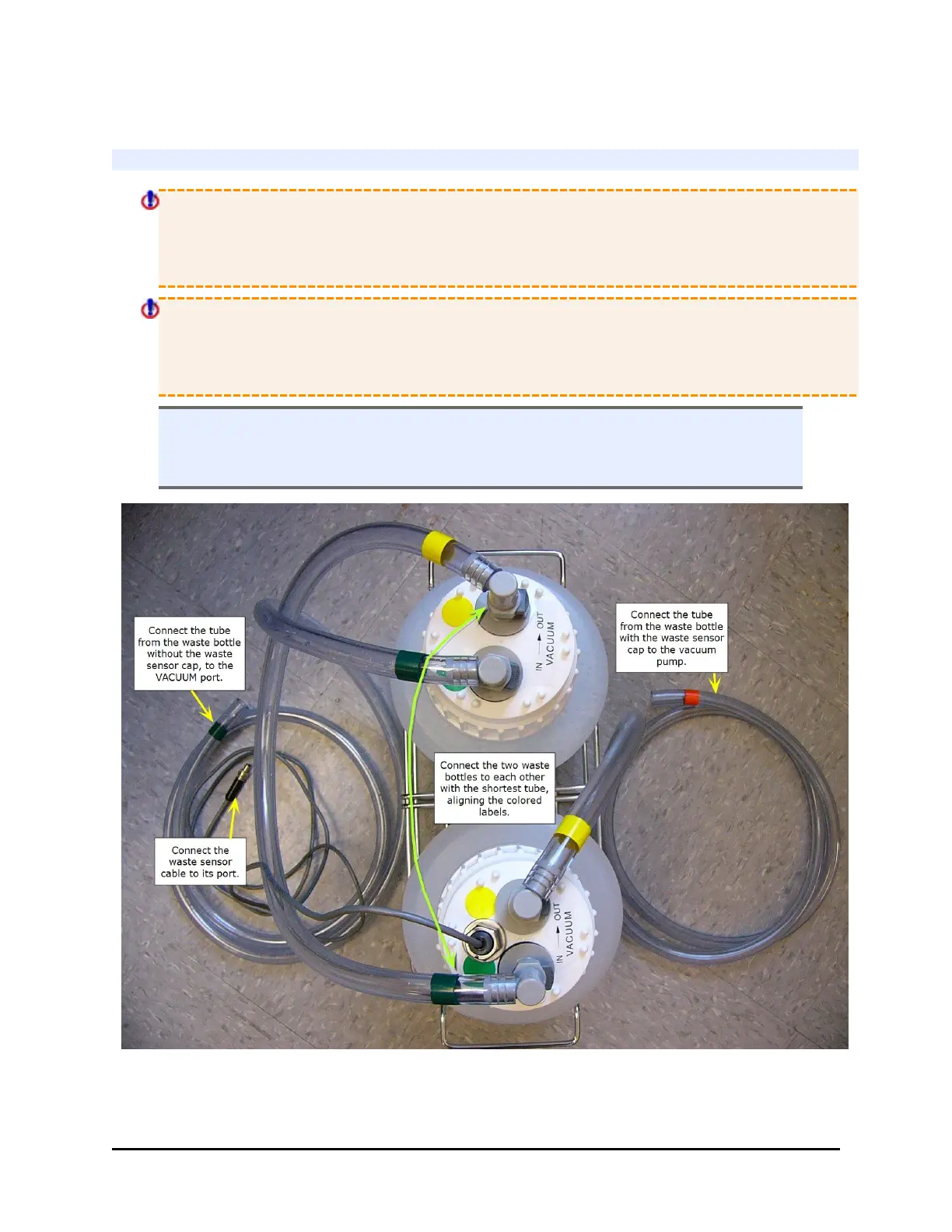 dots next to the inlet/outlet ports on the waste bottle caps to ensure the