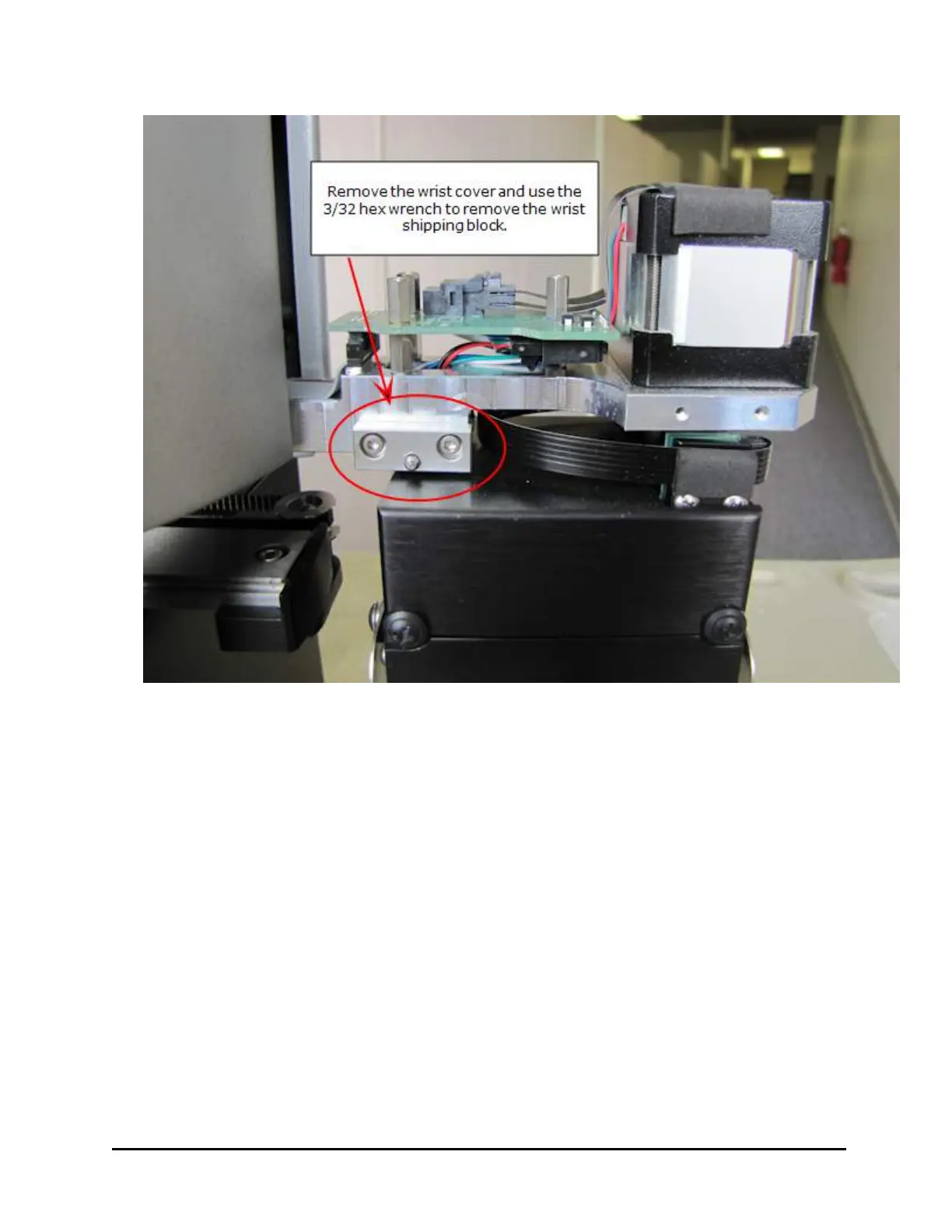 5. Use the 3/32 hex wrench to remove the wrist shipping block.