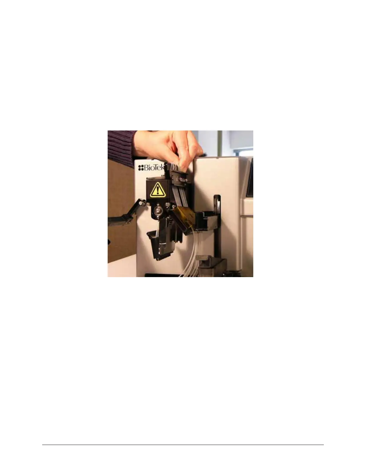 Holder’s front plate with the BioTek logo faces the Center Holder. Make sure