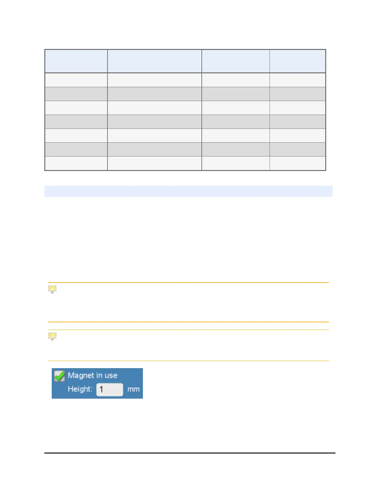 (without adjustments) when the magnet is used. It applies the specified height