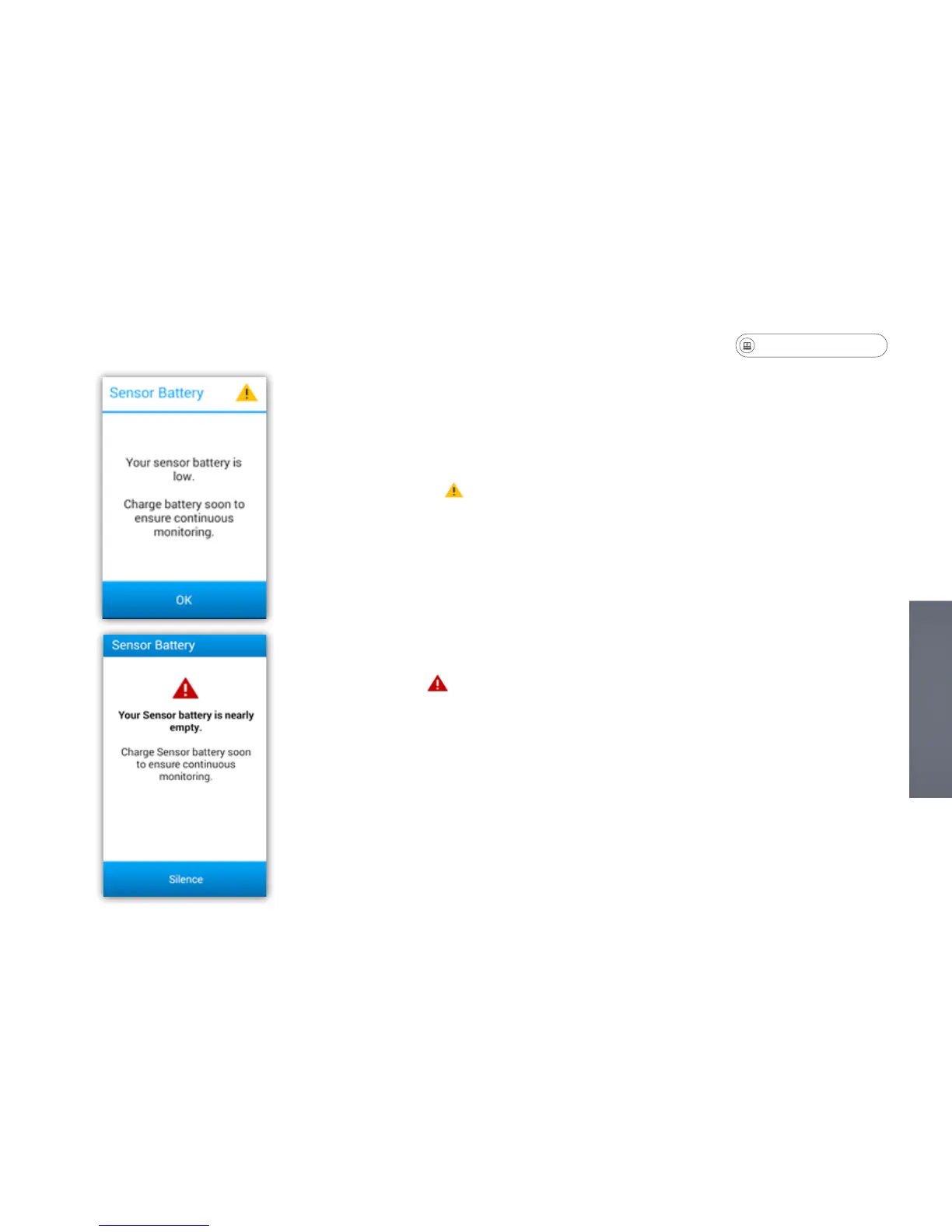 • A Battery Warning symbol indicates that the sensor battery life is low.
