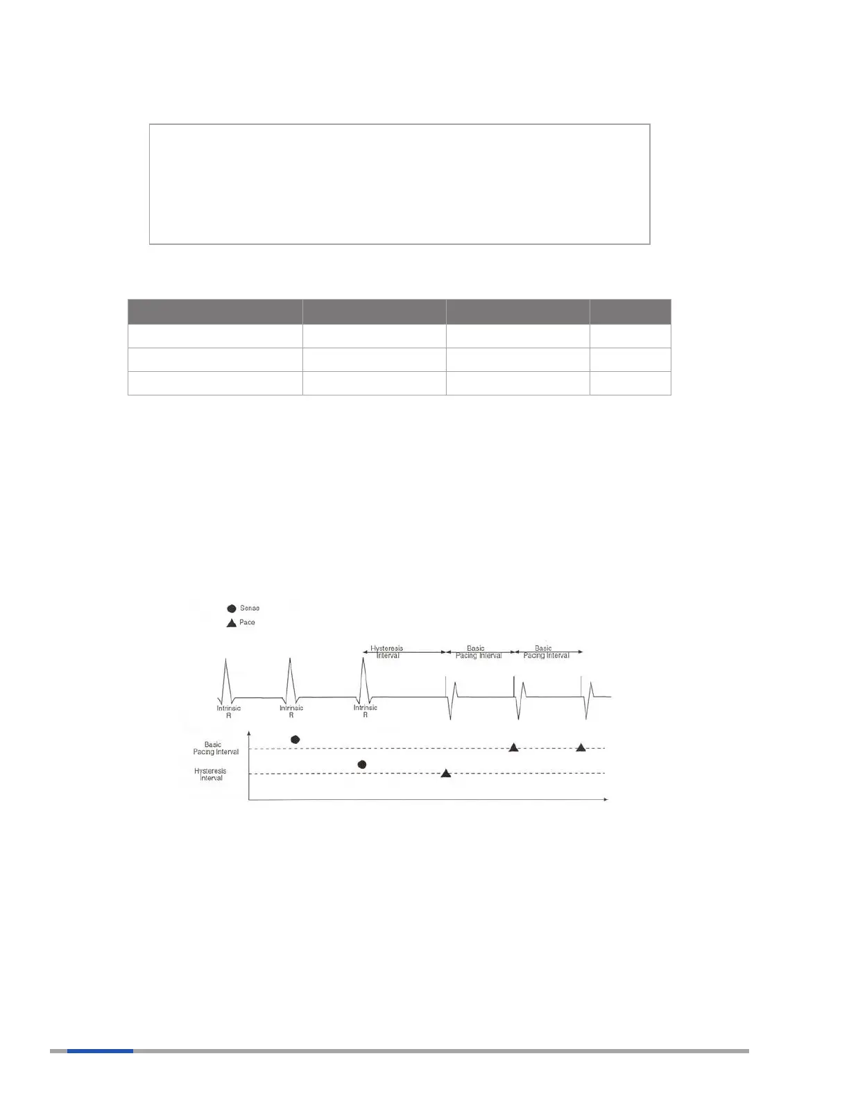 intrinsic activity below a programmed pacing or sensor-indicated rate. This hysteresis rate becomes