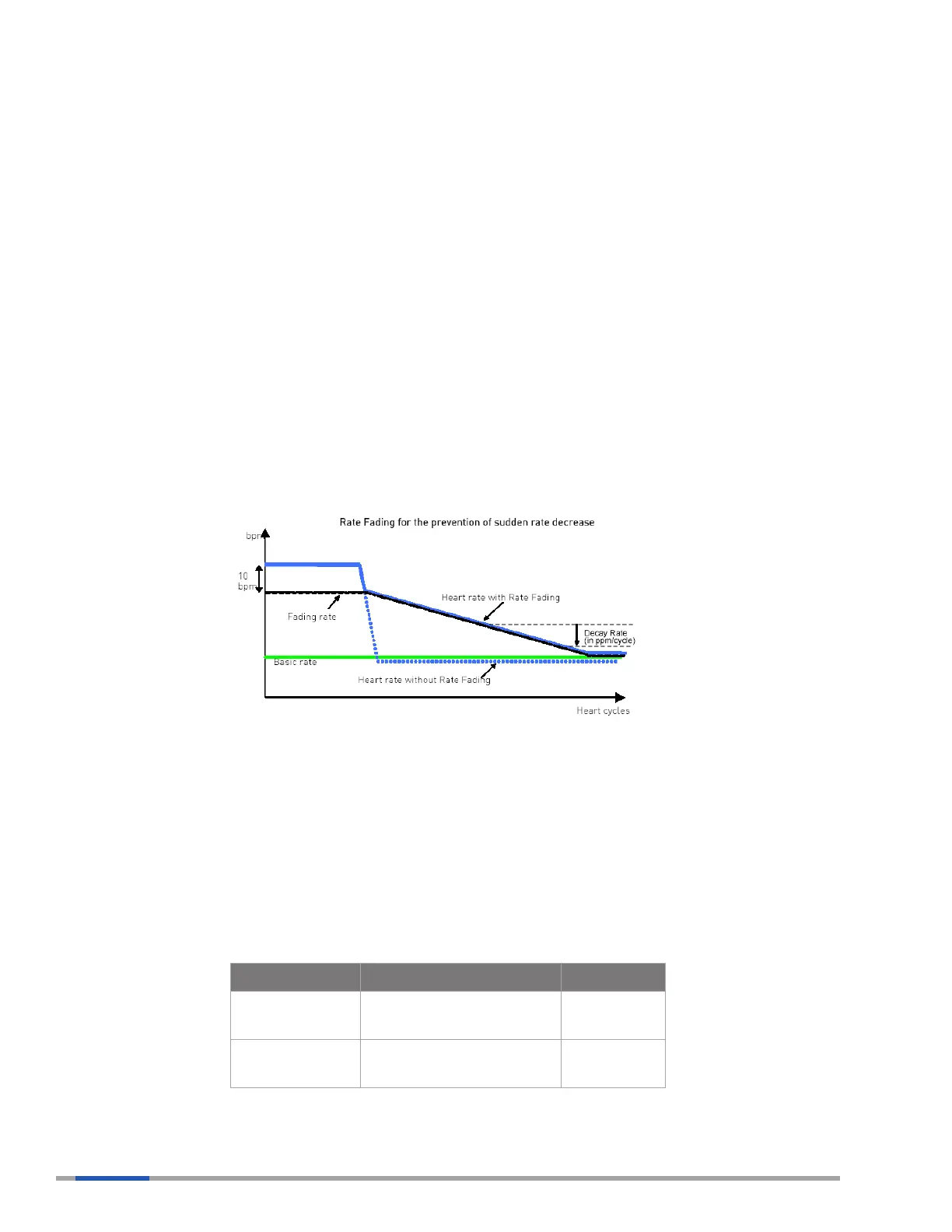 Fading Rate), the pacing rate begins at the RF rate and then decreases gradually by the programmable
