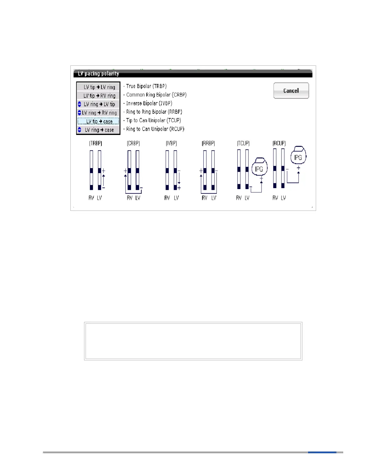 If a bipolar lead is connected to the pulse generator, unipolar or bipolar conguration can be