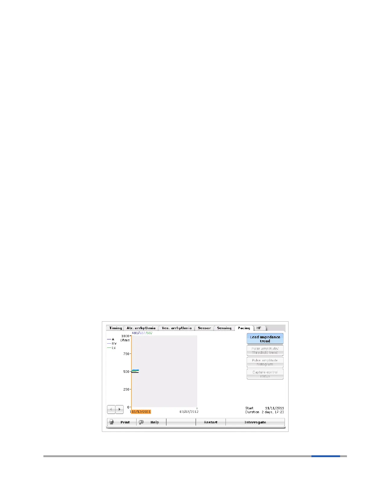 lead failure has occurred. The range for normal lead impedance is from 100 to 2500 ohms.