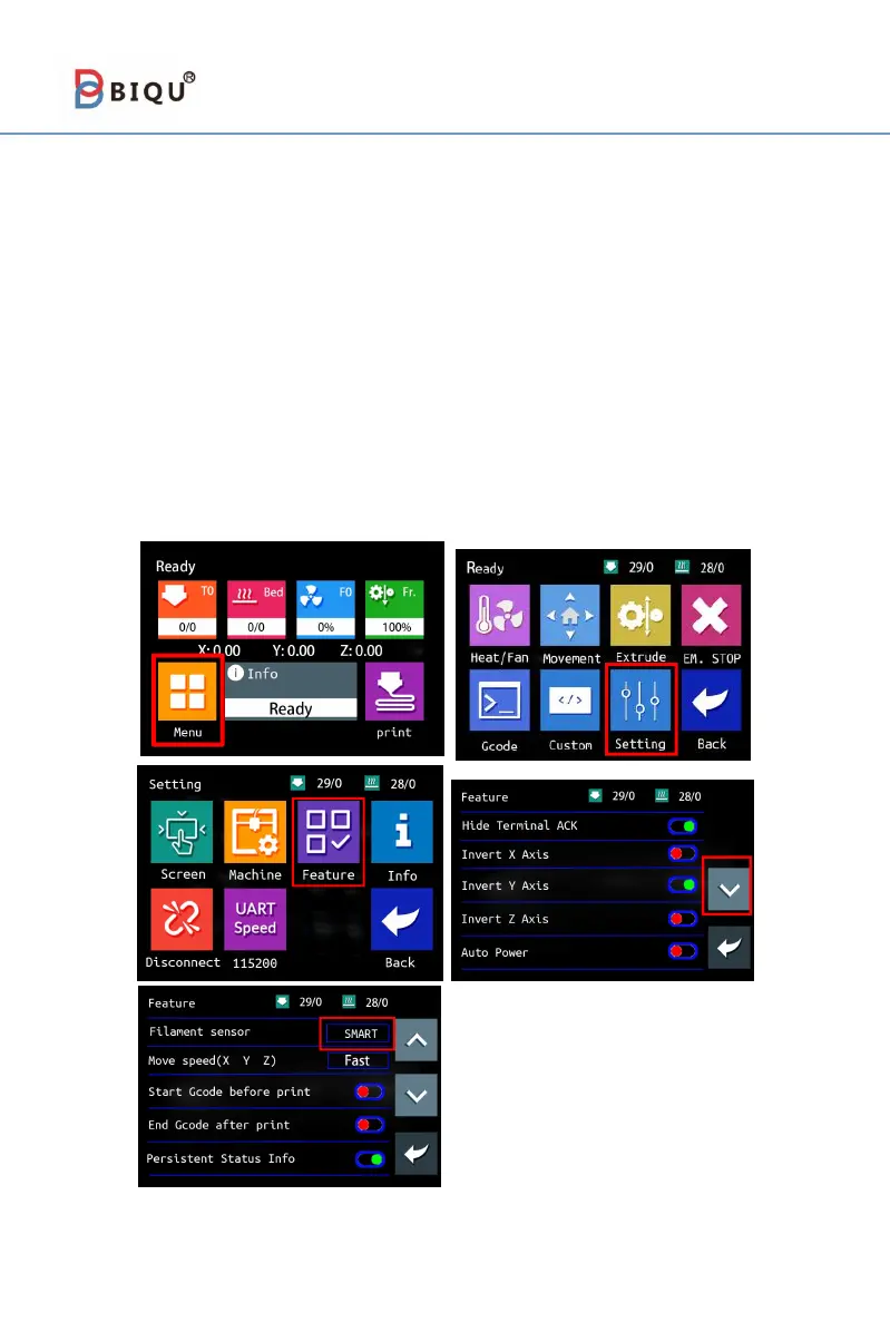 BIQU-B1, and then installs the smart filament sensor module. Choosing