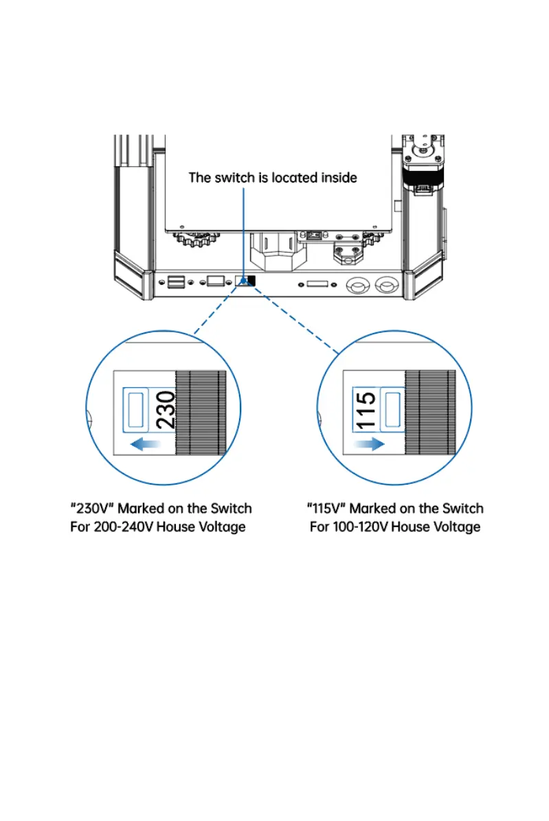 Before powering the machine on, select the right voltage by
