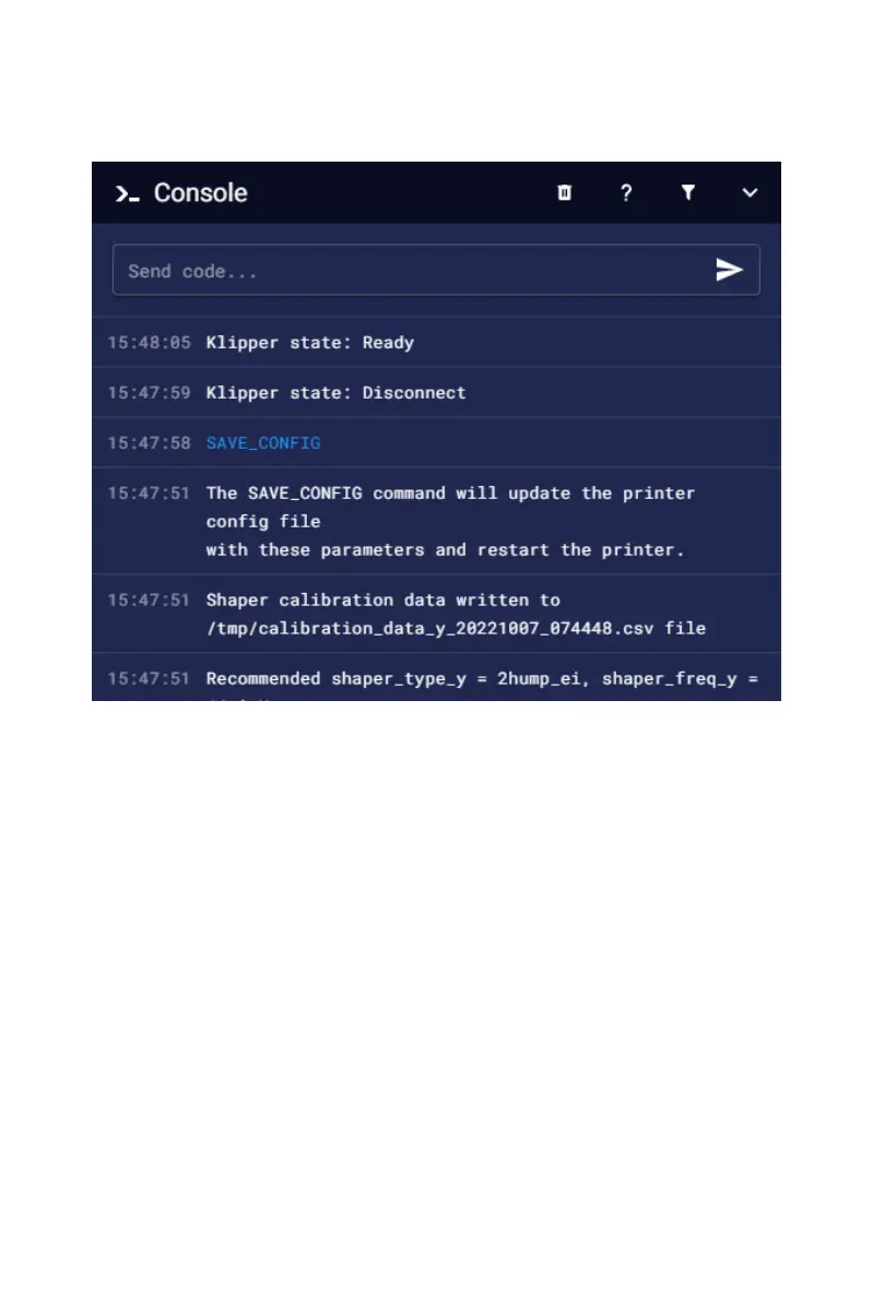 After calibration, enter the save code: SAVE_CONFIG