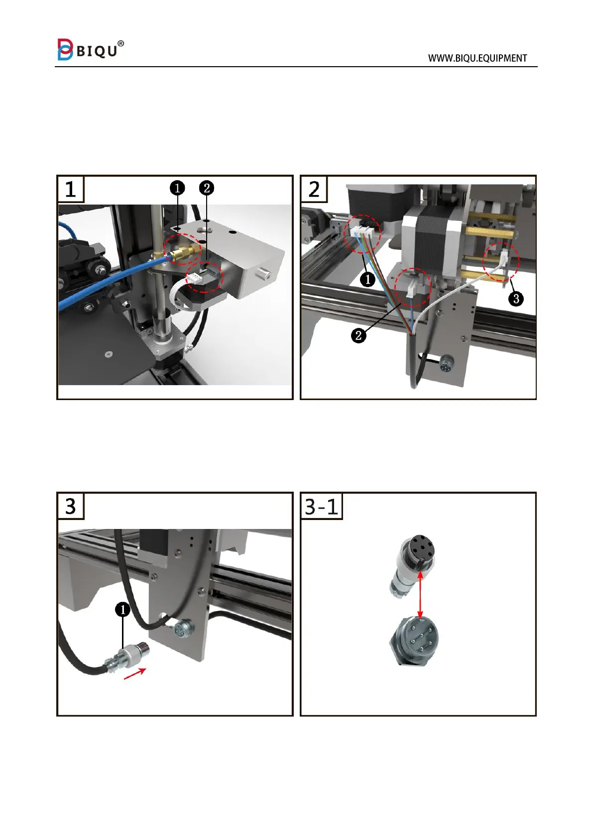 Step three: connect the circular connector (1) on to the correct location