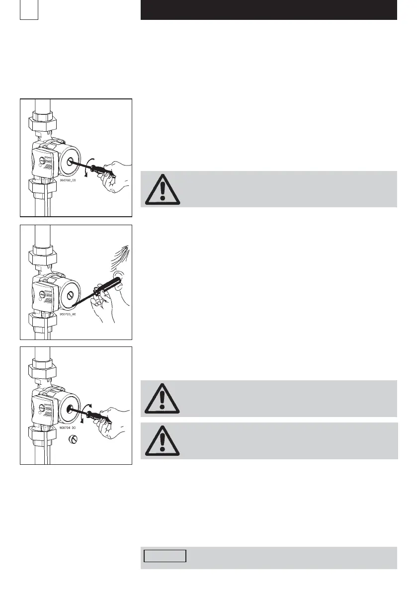 Die Pumpe nur bei gefüllter Anlage in Betrieb nehmen.
