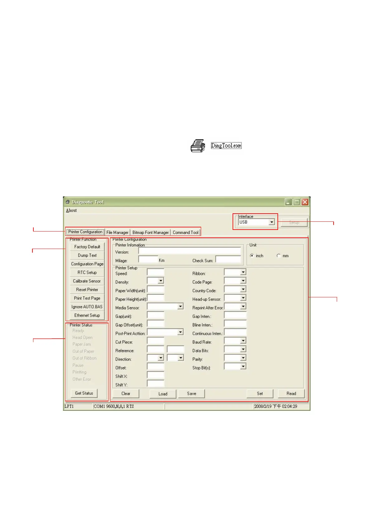 2. There are four features (Printer Configuration, File Manager, Bitmap Font Manager,