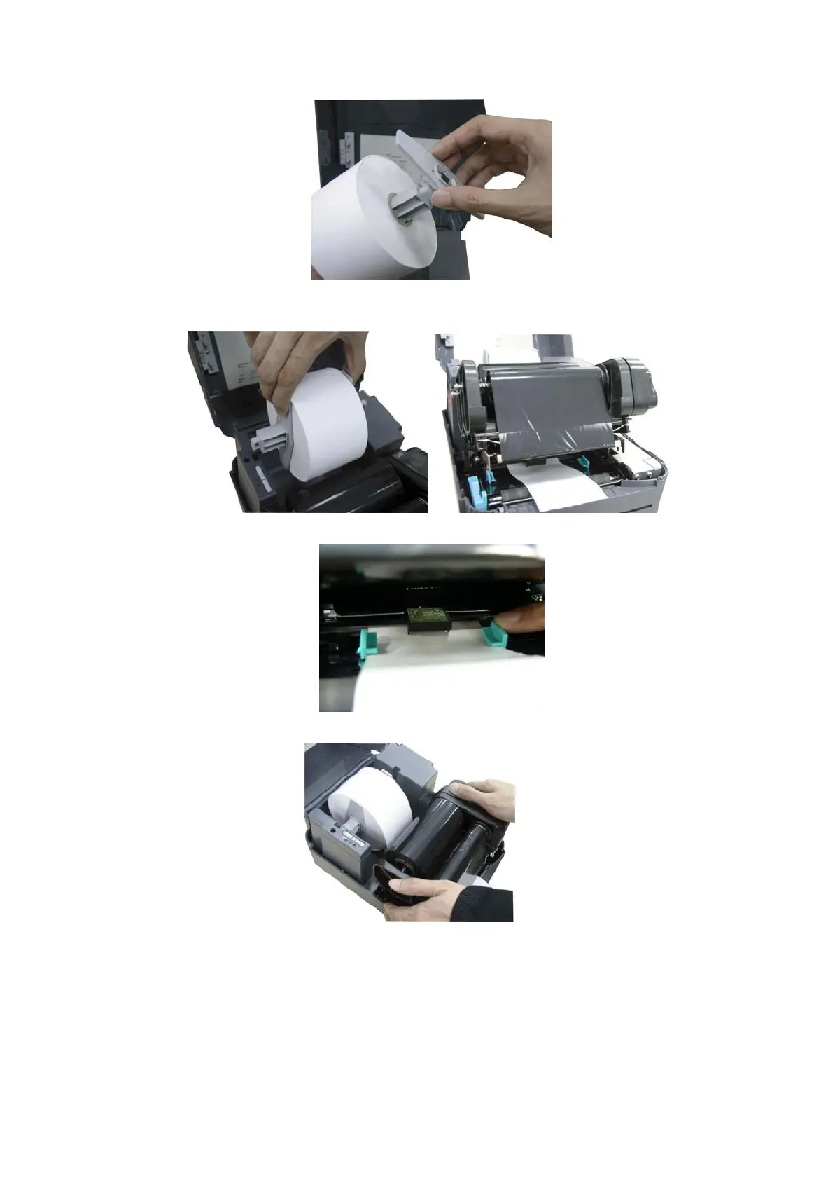 4. Place the label roll into the label roll mount. Feed the label under the carriage