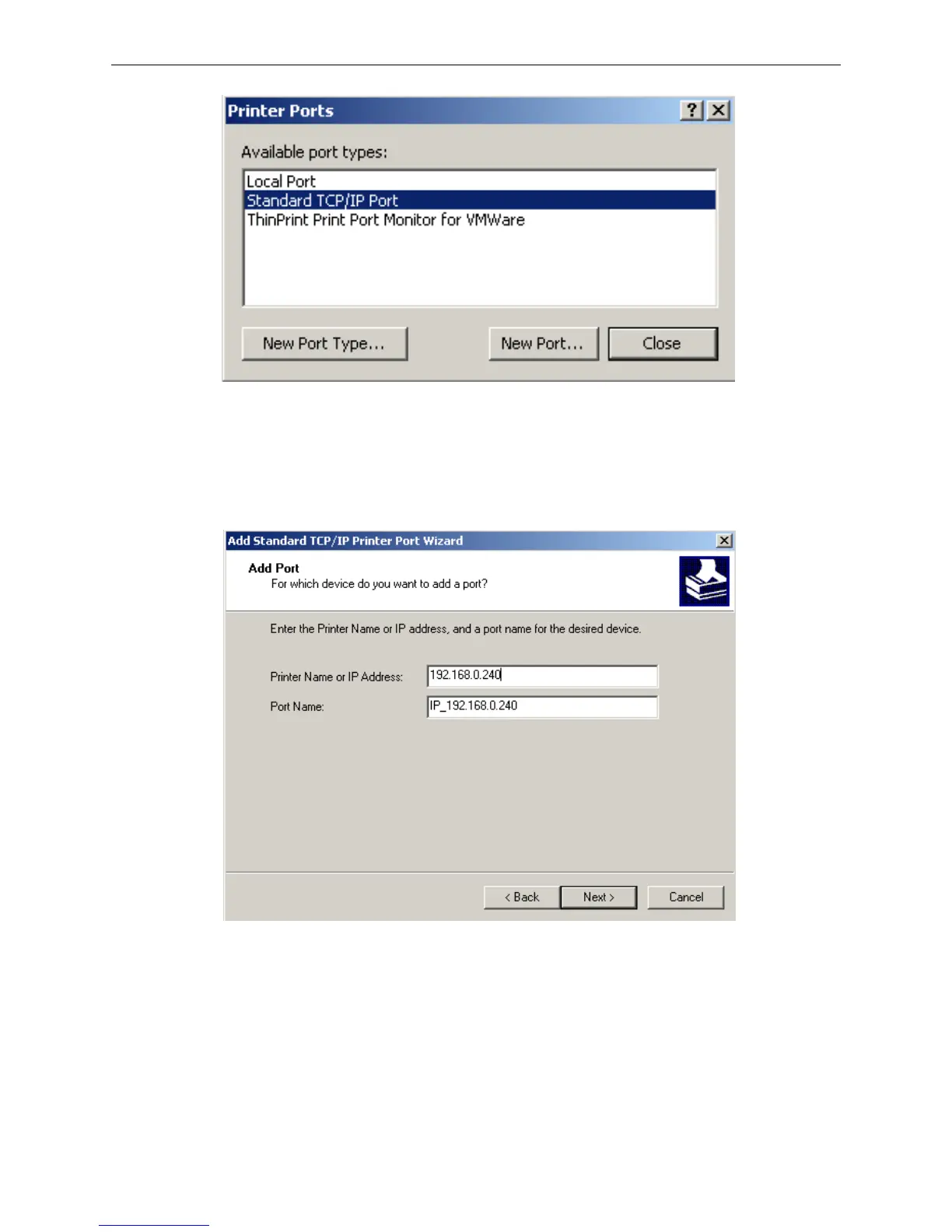 address” in the “Printer name or IP address” column. Take IP address “192.168.0.240” for