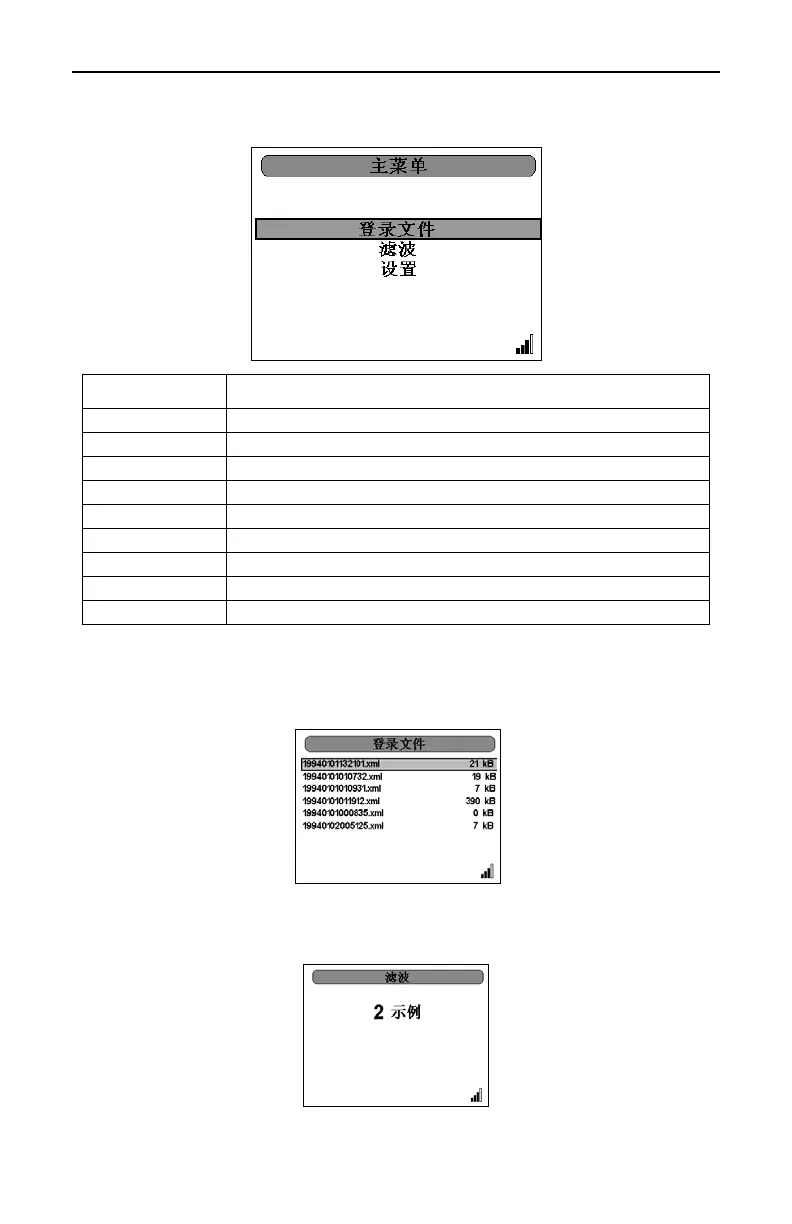 BIRD 5000-XT - 5000 Xt 主菜单,未附接传感器; 日志文件; 滤波菜单