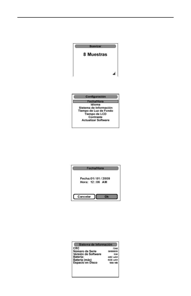 Nota: La fecha y hora se reinician cuando el 500-XT se apaga.