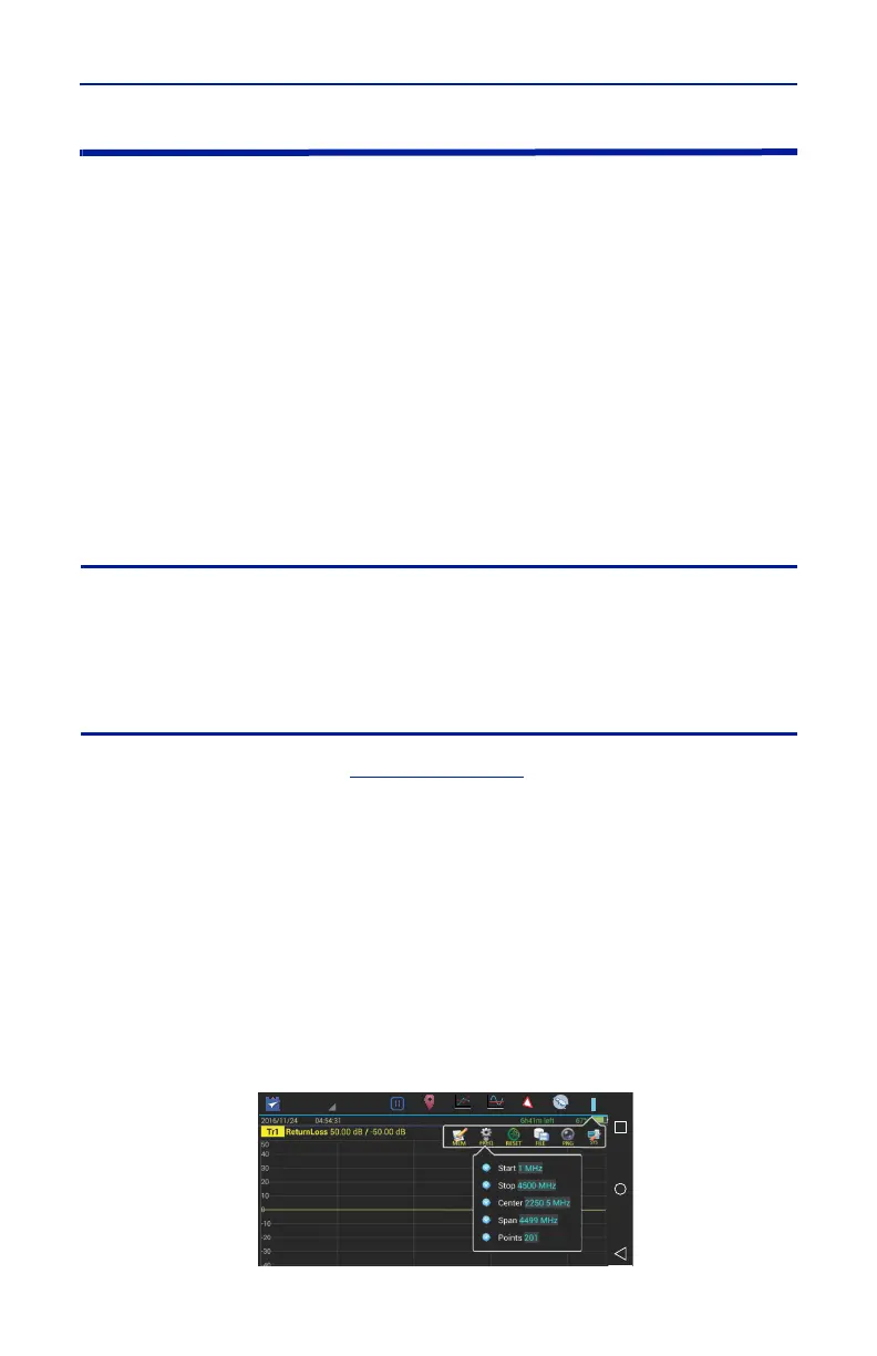 Example - For a 450 MHz antenna, set the start frequency at 400 and