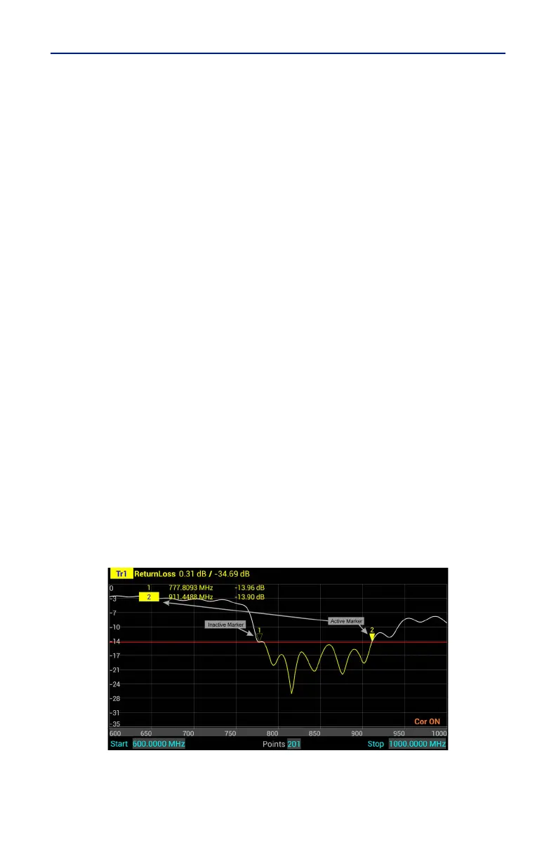 Press M1~M2 to move marker 3 to the peak signal between marker 1 and