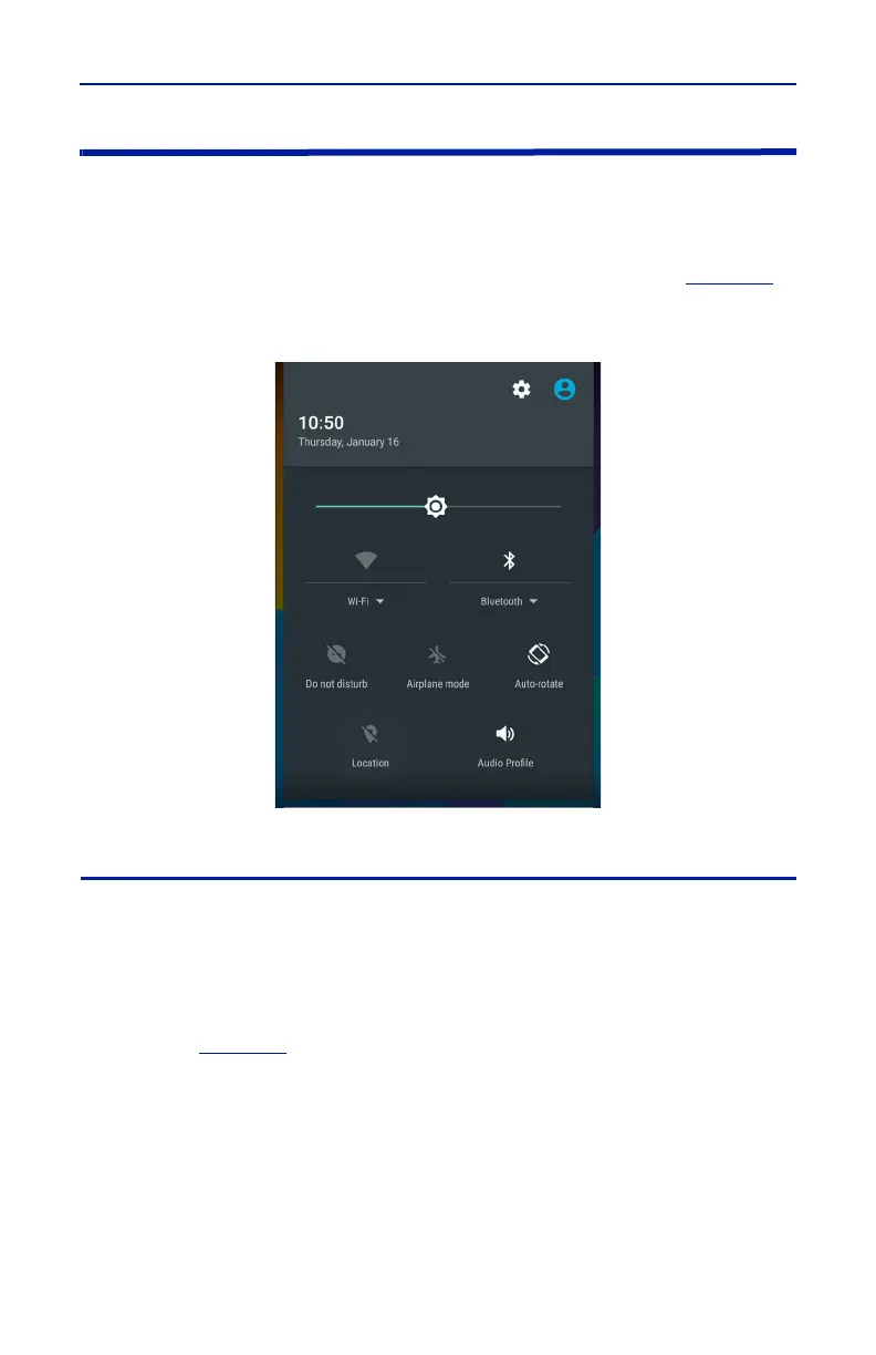 c. Bluetooth: tapping Bluetooth icon turns Bluetooth off or on.