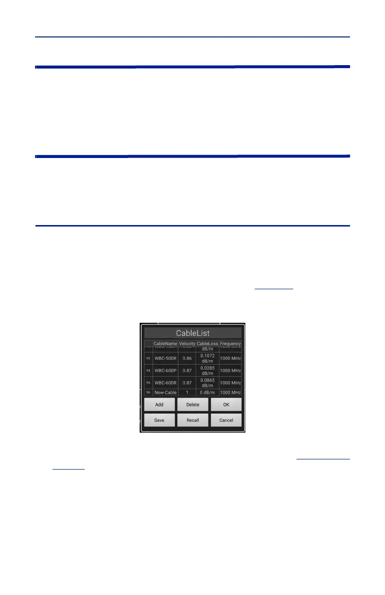 5. Press each cell for Cable name, Velocity, Cable Loss and Frequency to enter