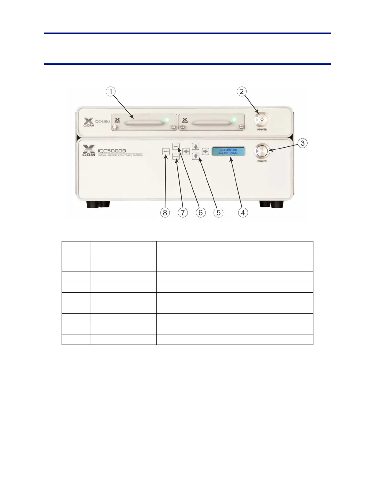Figure 2 IQC5000B/IQC-MEM Front Panel