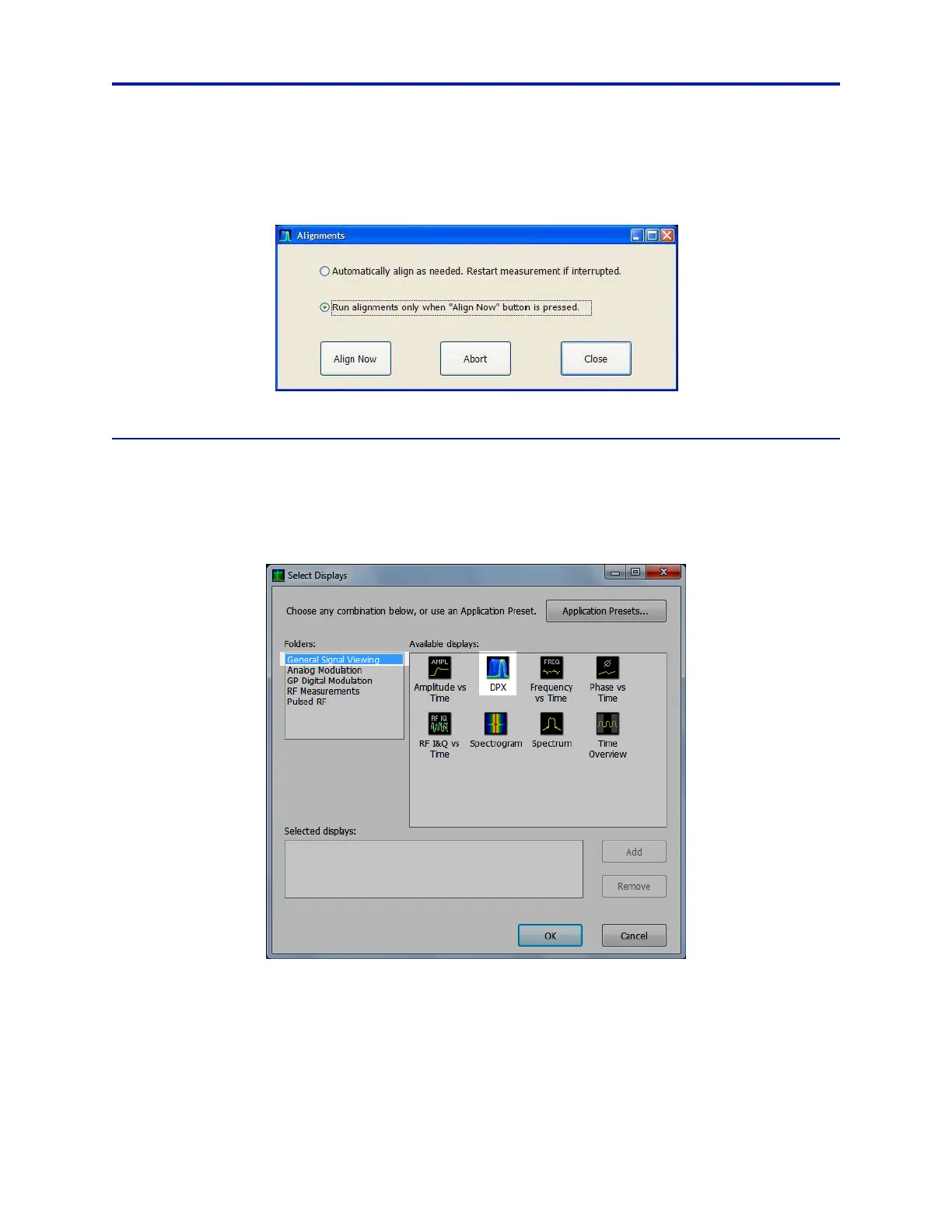 The DPX display must be enabled to record data from the RSA. It is recommended that only the DPX display is