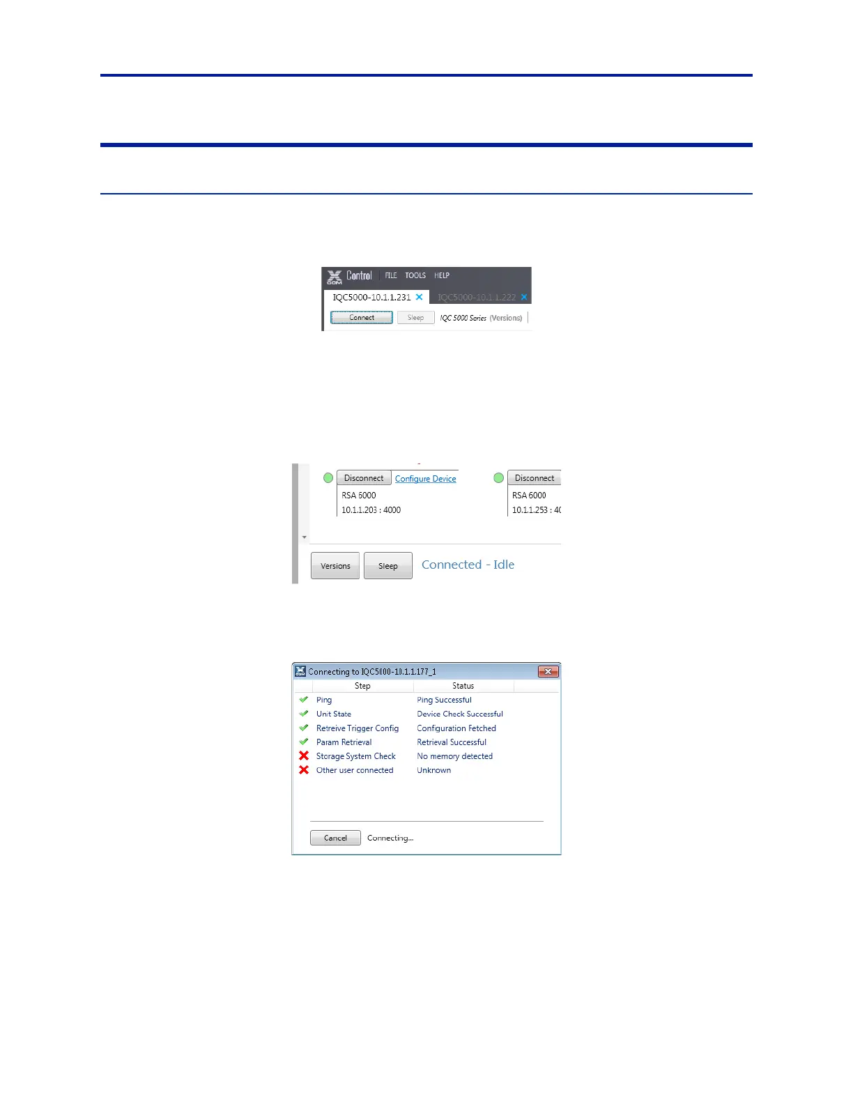 In the event of a failure, or if a subsystem is still booting, a connection monitoring window will be shown that allows
