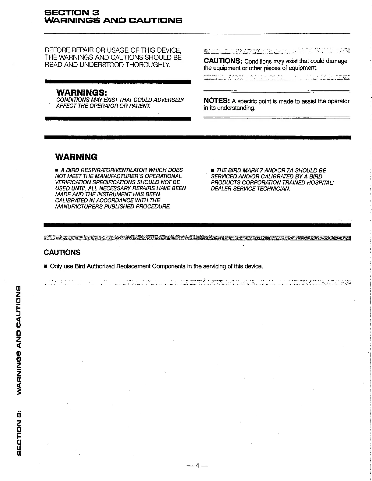 BIRD MARK 7 - SECTION 3 WARNINGS AND CAUTIONS; WARNINGS; CAUTIONS