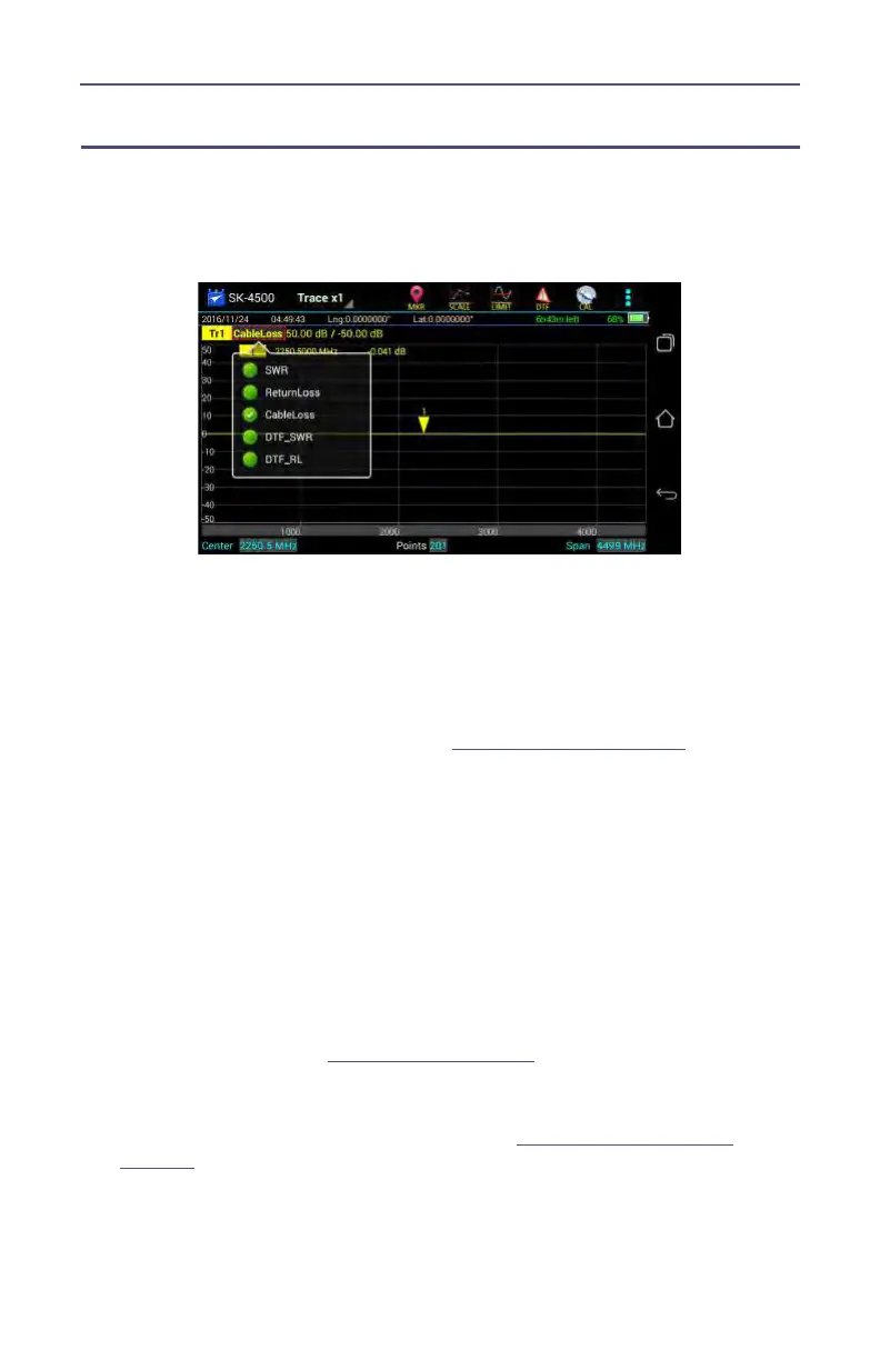 1. Press trace measurement field to display Measurement Mode menu.