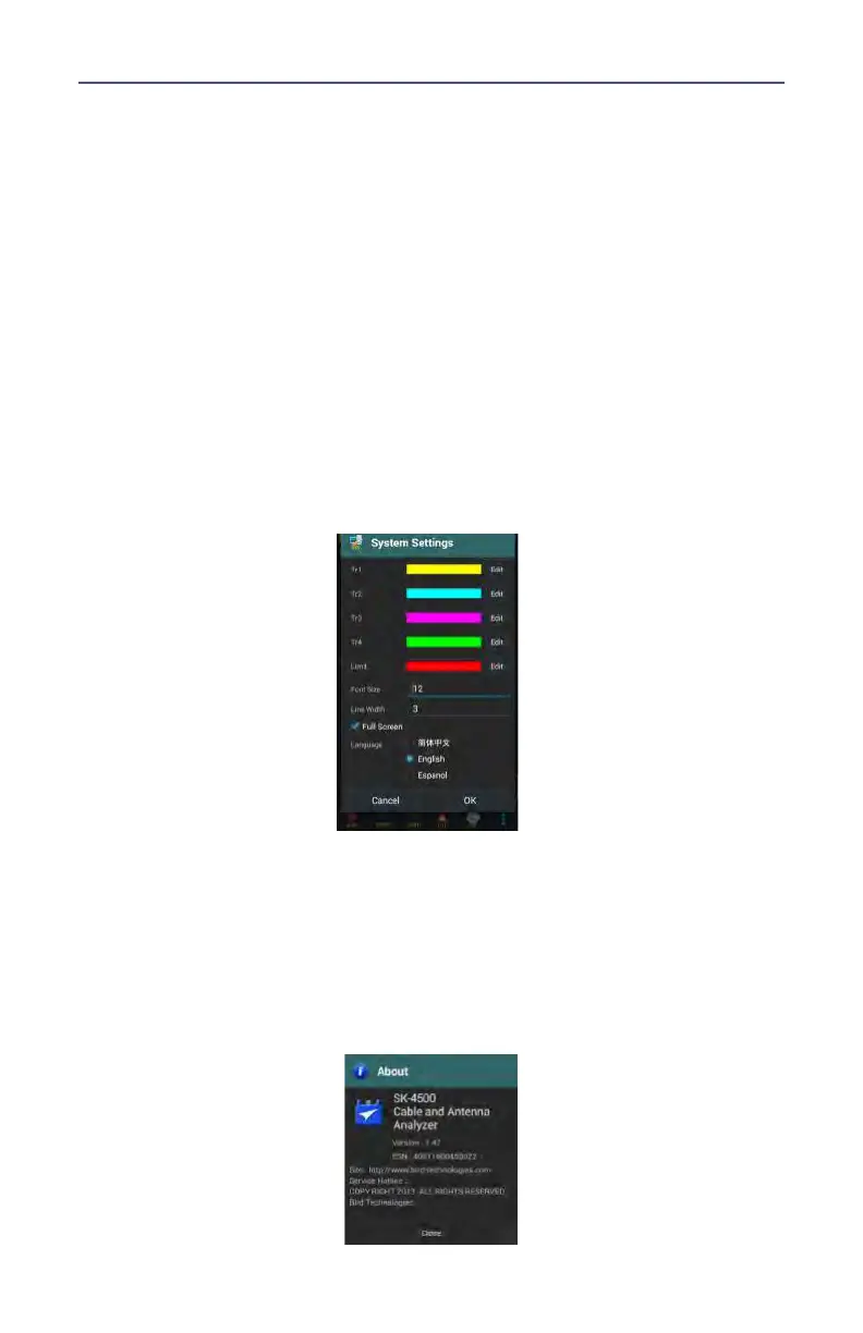 System Settings dialog allows the user to change system display settings. The